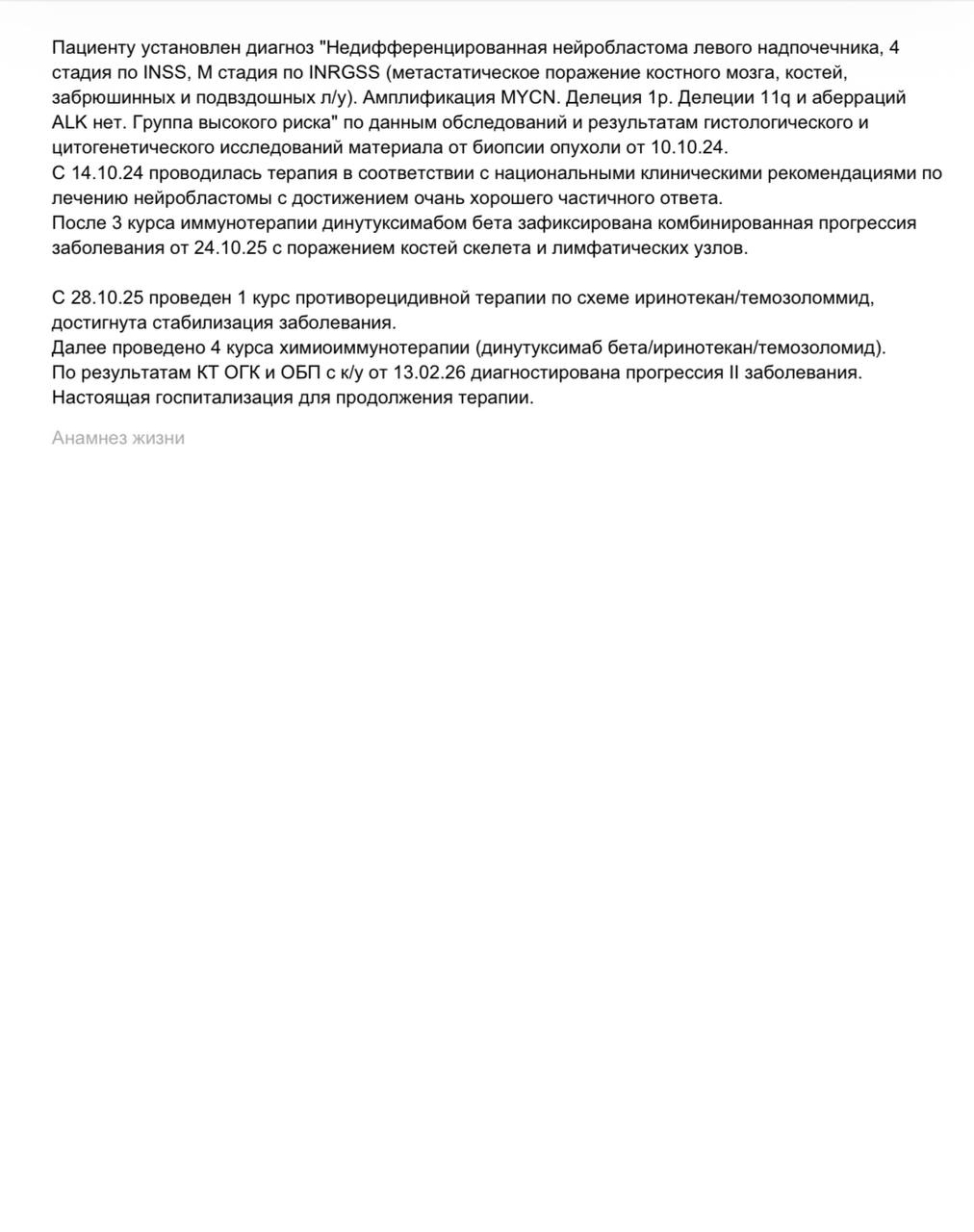 Недифференцированная нейробластома левого надпочечника, 4 стадии