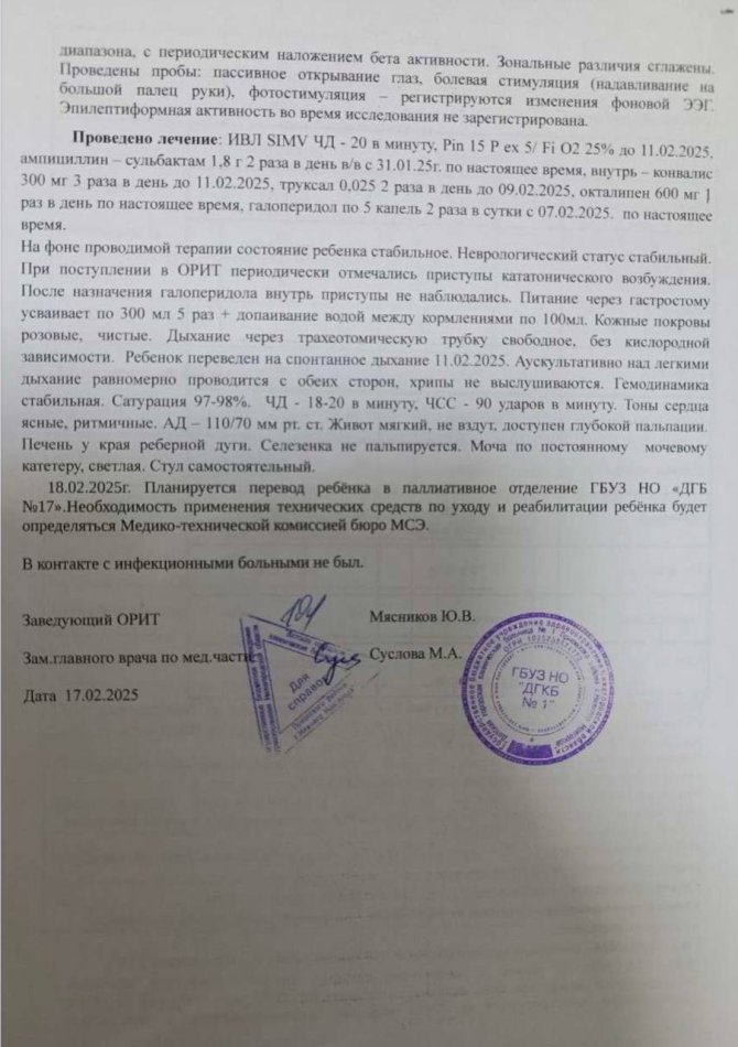 21 января 2025г. нас перенаправляют в другую больницу, где состояние ребенка ухудшается. В ночь с 29 на 30 января у Максима происходит остановка дыхания и останавливается сердце, путем немедленных реанимационных действий совместно с медсестрой удается его вернуть к жизни.