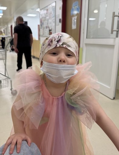 София начала второй блок химиотерапии. И непосредственно во время введения химии состояние Софии очень хорошее, токсичность пока не достигла своего максимума.