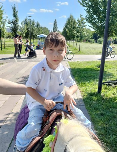Также сейчас лето и удалось разок выбраться в парк и покататься на пони, Август обожает животных, и тем более кататься на них.